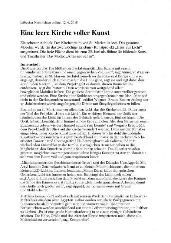 "haus aus licht", art event at St. Marien-church, Lübeck, GER