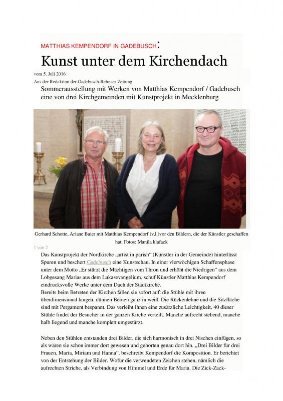"magnificat", Kirche zu Gadebusch, one month as "artist in parish", GER